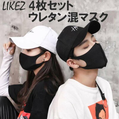 【返品交換不可/お一人様ご注文マスク合計3点まで】ウレタン混マスク 4枚セット 立体 洗える ブラック フリーサイズ g914